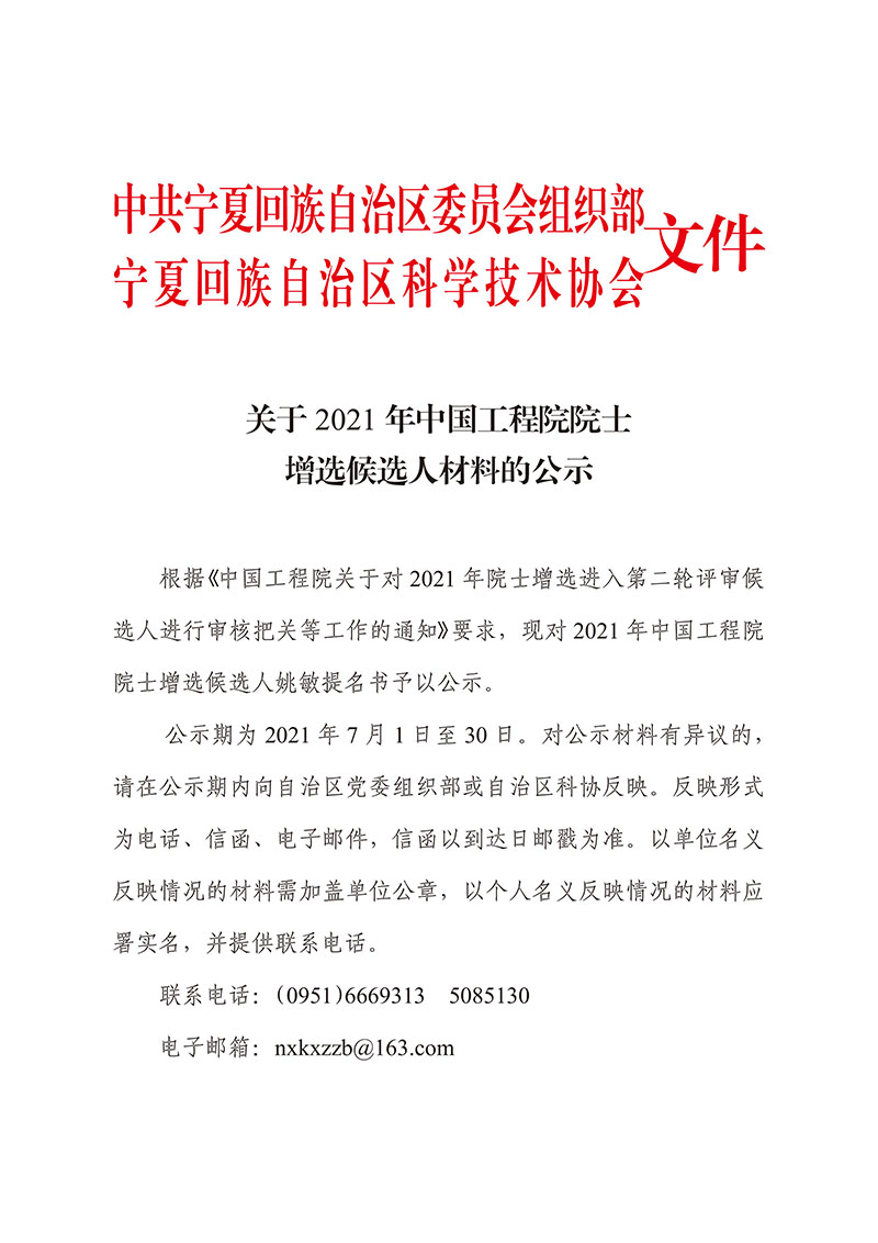 关于2021年中国工程院院士增选候选人材料的公示
